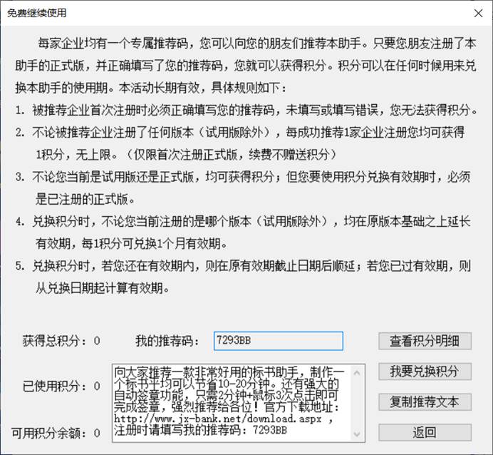 需要强调的是:不论您自己当前是试用版,还是已注册的正式版,均可正常获得积分。只是在要使用积分进行兑换时,您必须是已注册的正式版。所以别等了,现在就可以朋友圈转发,分享推荐起来吧!!!