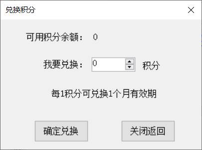 在这里您可以用您获得的积分免费兑换助手有效期。每1积分可兑换1个月有效期,每次兑换最少1积分。兑换成功之后重新进入助手即可生效。